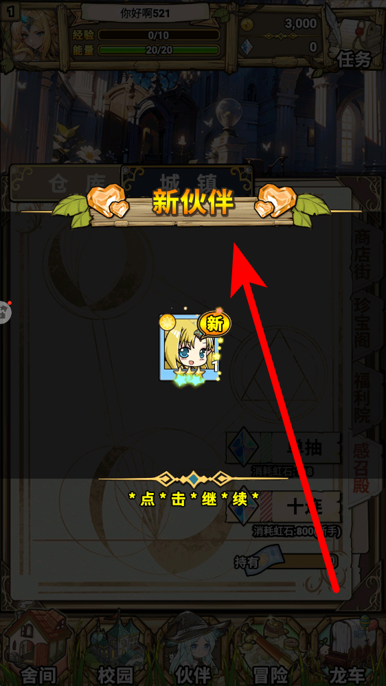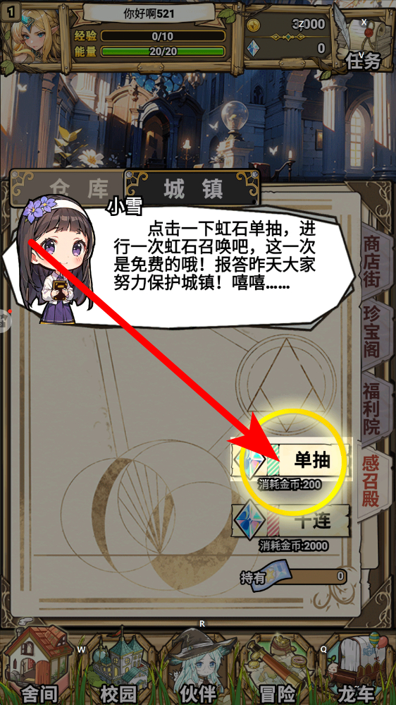 3、開局若卡住,可喂經驗瓶,后期要關注角色培育,出低資質角色利用小綠瓶資質轉換,重要角色點擊上鎖,另外虹石單抽召喚,有機會獲得新伙伴。