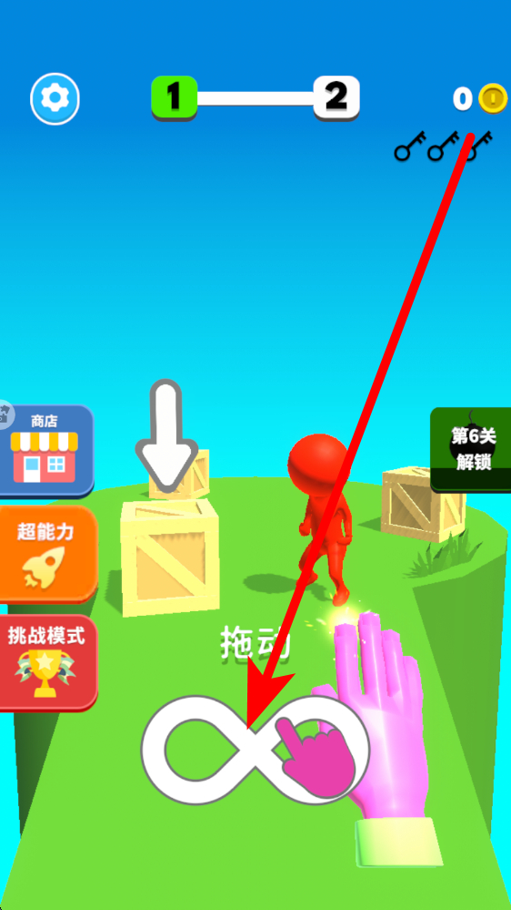 1、進入游戲關(guān)卡后,看到屏幕上的無限符號標志,按照提示拖動手指,以此操控游戲中的特殊能力,為后續(xù)突破障礙做好準備。