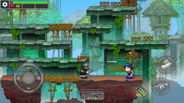 1、進(jìn)入游戲,通過屏幕左下方虛擬搖桿控制角色移動(dòng),留意左上角HP生命值,保持安全。