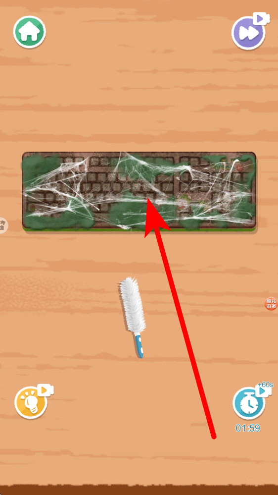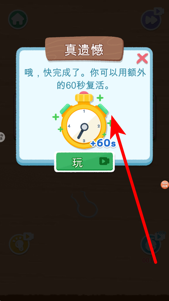 3、清潔過程有時(shí)間限制,若時(shí)間耗盡未完成清潔,會出現(xiàn)真遺憾的提示,此時(shí)可選擇用額外的60秒復(fù)活,繼續(xù)完成清潔任務(wù),挑戰(zhàn)成功。