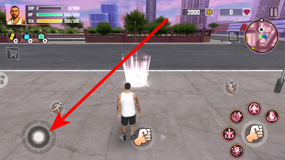 3、通過左側(cè)的虛擬搖桿操控角色移動,靈活調(diào)整方向,同時利用右側(cè)的技能按鈕,在遇到敵人時發(fā)起攻擊,體驗都市戰(zhàn)斗的刺激冒險。