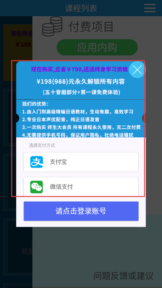 3、在付費項目頁面,選擇支付方式,購買永久解鎖所有內(nèi)容的會員。