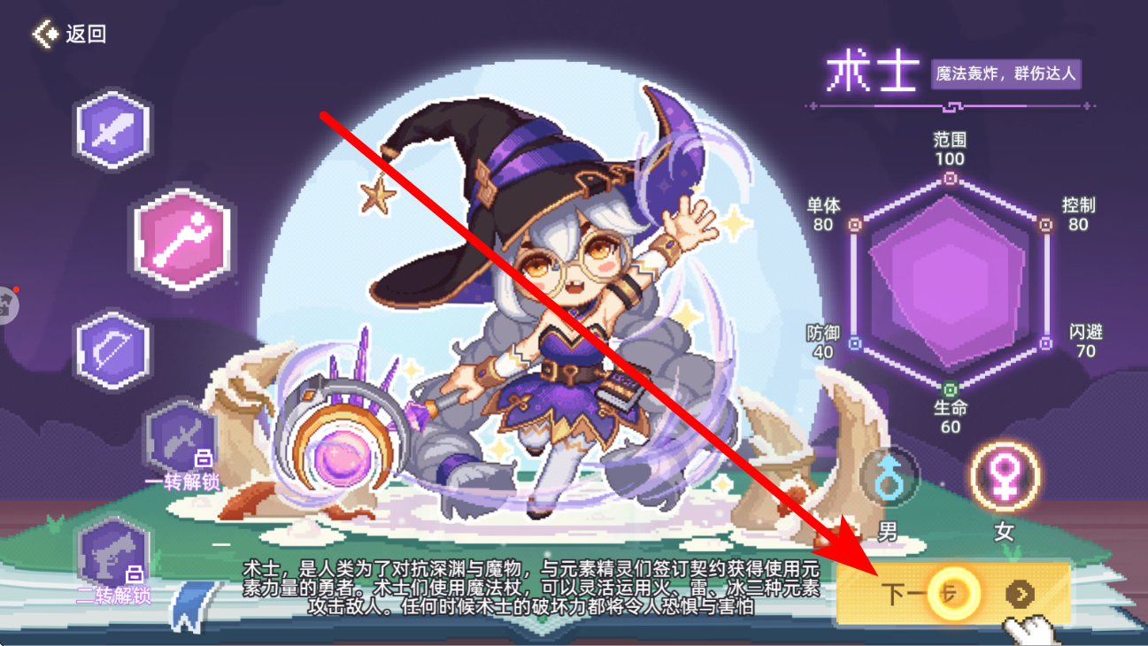 1、先選擇服務(wù)器,接著進(jìn)入角色創(chuàng)建環(huán)節(jié),可選擇不同職業(yè),比如術(shù)士等,了解職業(yè)特點后,點擊下一步,開啟后續(xù)的捏臉與冒險。