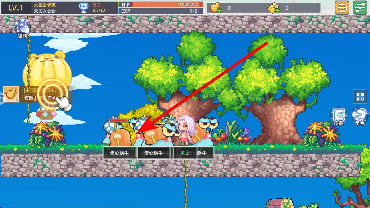 3、遇到諸如傷心蝸牛等怪物,可操控角色對其發(fā)起攻擊,消滅怪物后,接取并完成主線任務(wù),在任務(wù)過程中不斷成長,探索更多游戲內(nèi)容。