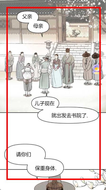 3、繼續(xù)閱讀漫畫,可看到父親母親,兒子現(xiàn)在就出發(fā)去書院了,請你們保重身體等劇情內(nèi)容。