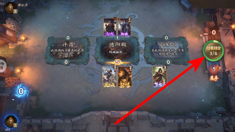 3、當(dāng)本回合的操作完成后,點(diǎn)擊結(jié)束回合按鈕,進(jìn)入下一回合,在后續(xù)回合中,繼續(xù)部署卡牌、調(diào)整策略,通過多回合的博弈,最終贏得對戰(zhàn)勝利。