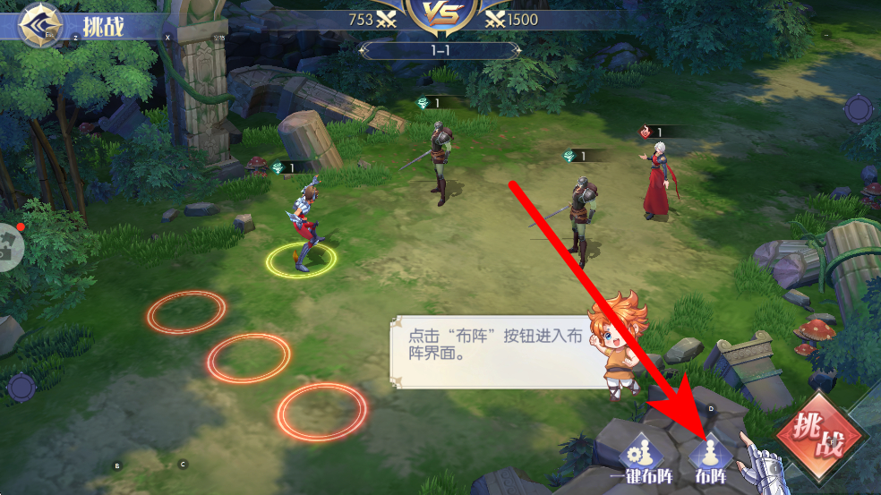 1、進(jìn)入挑戰(zhàn)環(huán)節(jié)后,點擊布陣按鈕,進(jìn)入布陣界面,在這個界面中,詳細(xì)思考怎么勝利,可對參與戰(zhàn)斗的角色進(jìn)行編排,為戰(zhàn)斗做好策略準(zhǔn)備。