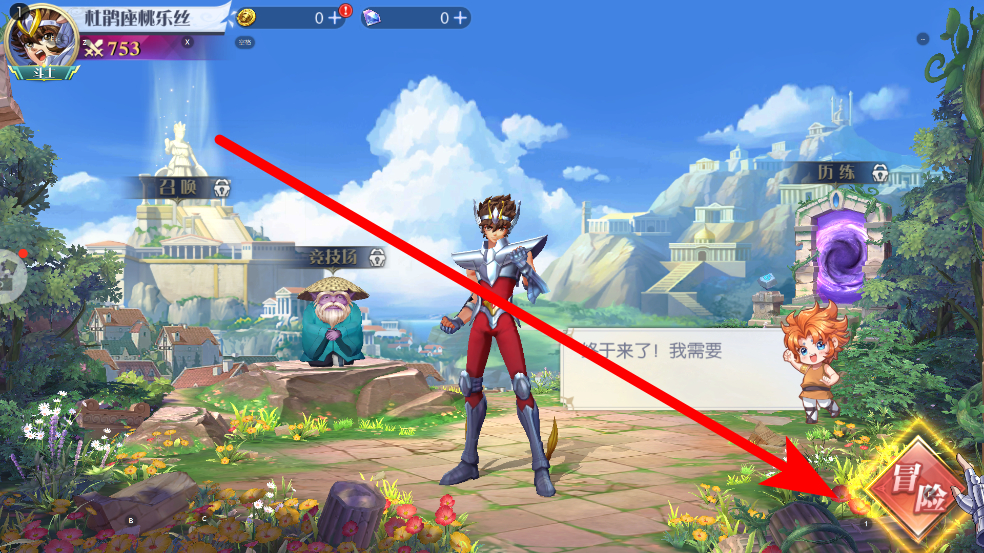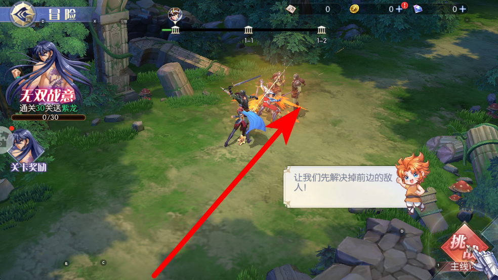 2、在場景中,找到冒險(xiǎn)按鈕并點(diǎn)擊,進(jìn)入冒險(xiǎn)場景,開啟冒險(xiǎn)進(jìn)程,在冒險(xiǎn)場景中,會遇到各類敵人,準(zhǔn)備好與它們展開戰(zhàn)斗。