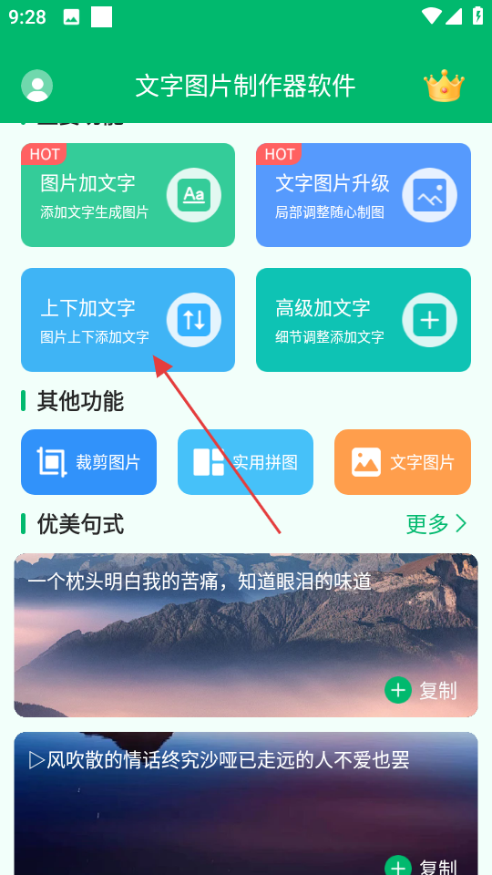 1、在文字圖片制作器軟件主頁面,點擊上下加文字,進入選擇相冊頁面。