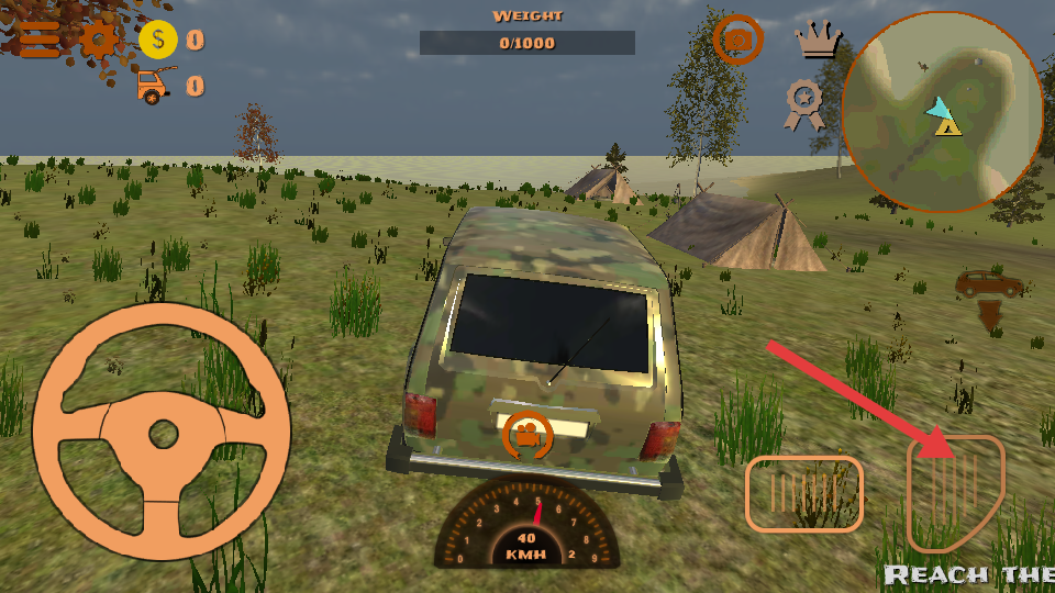 2、利用左側(cè)方向盤操控車輛方向,右側(cè)按鍵控制油門等,行駛時留意地圖,根據(jù)箭頭或目標(biāo)標(biāo)識,規(guī)劃行駛路線,朝著目標(biāo)區(qū)域前進。