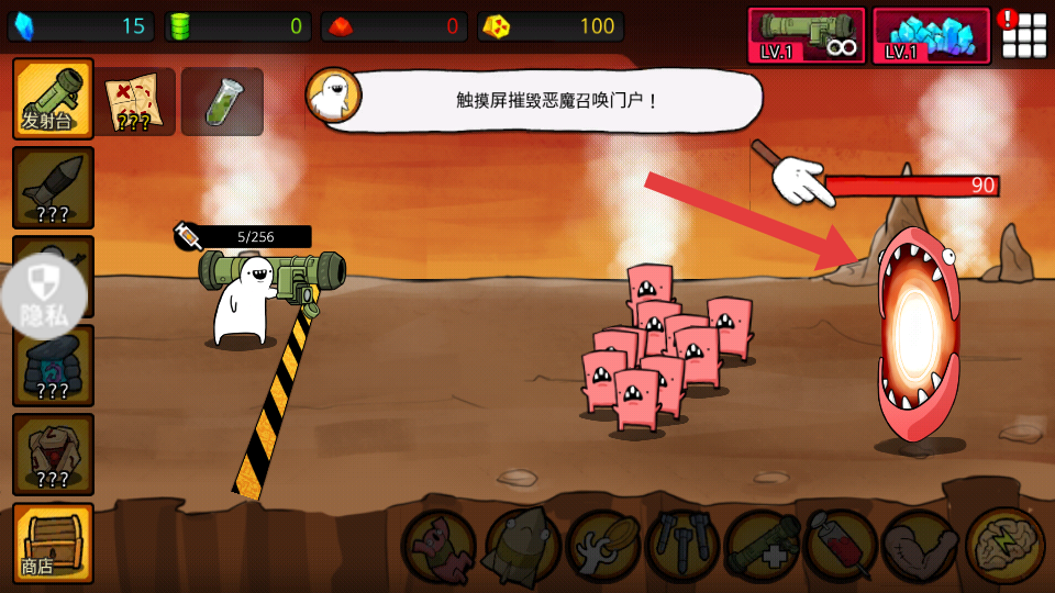 1、按照提示,觸摸屏幕攻擊惡魔召喚門戶,集中火力快速削弱其血量,阻止更多敵人從門戶中出現(xiàn),減輕戰(zhàn)斗壓力。