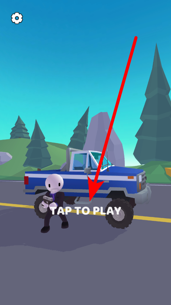 1、新手進入游戲,看到TAPTOPLAY提示,點擊相應位置,開啟在街口的槍戰(zhàn)冒險,為后續(xù)的射擊與闖關做好準備。