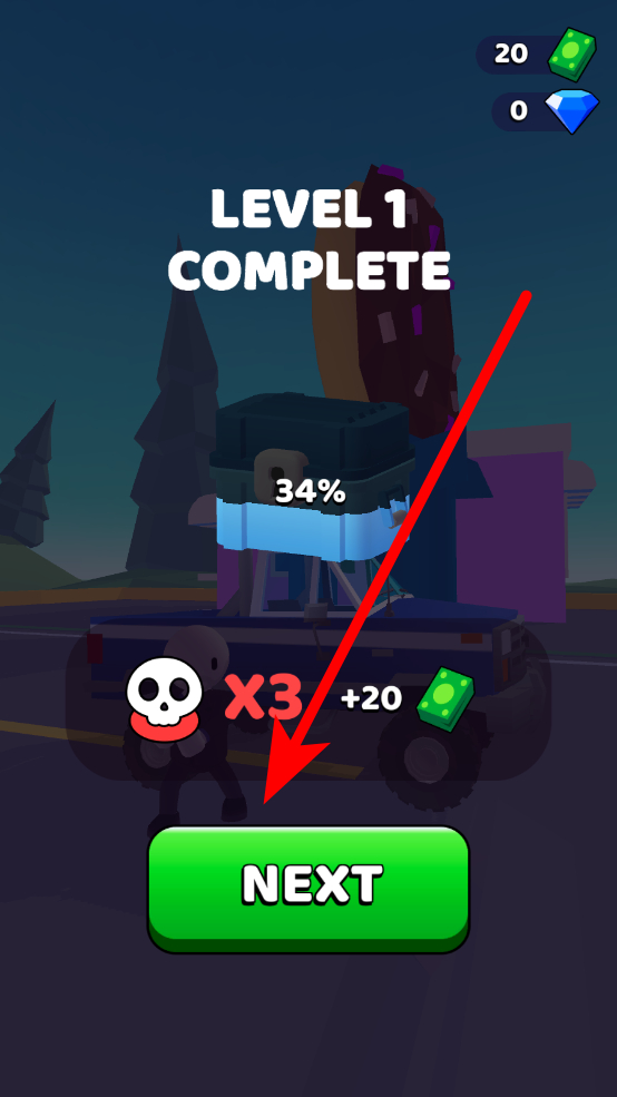 4、成功完成當前關卡后,會出現(xiàn)NEXT按鈕,點擊該按鈕,進入下一個關卡,繼續(xù)體驗新的槍戰(zhàn)挑戰(zhàn),不斷推進游戲進程。
