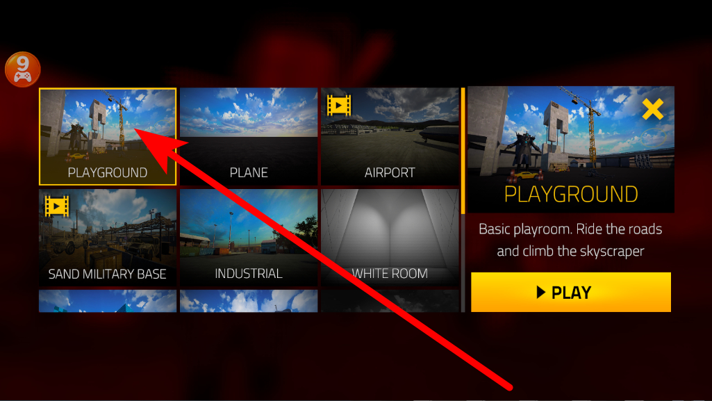 2、進入場景選擇界面,會看到多個不同的場景選項,挑選想要體驗的場景,比如PLAYGROUND,為后續(xù)的軍事互動確定場景。