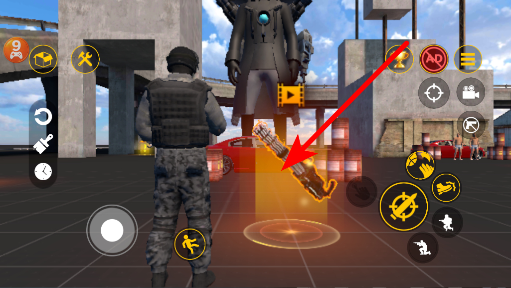 4、進入互動場景后,利用界面上的各類按鍵,選擇并使用武器,與場景中的元素進行互動,體驗軍事模擬的樂趣,推進游戲進程。