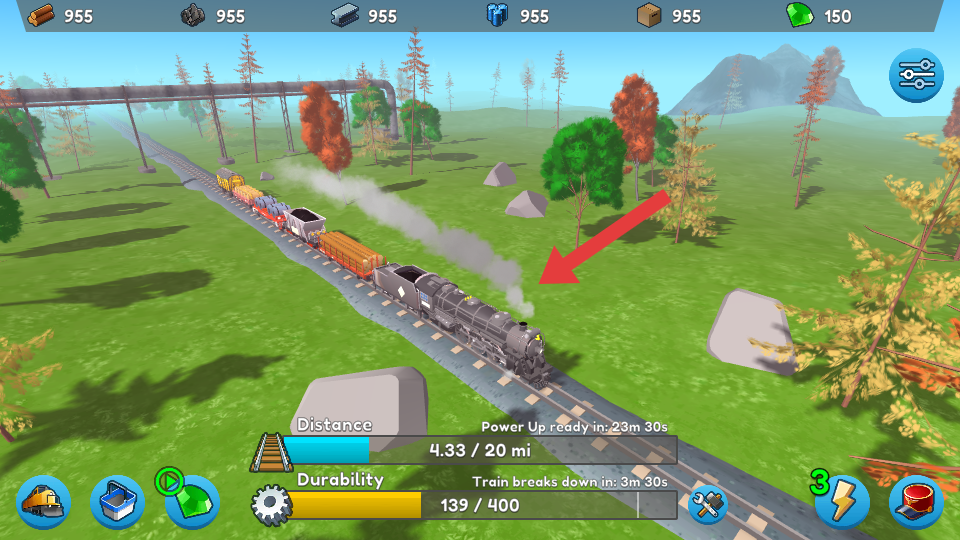 4、道具運(yùn)用:合理使用閃電等道具,可在關(guān)鍵時(shí)刻提升火車性能,如加速運(yùn)輸、快速恢復(fù)durability等,助力高效完成運(yùn)輸目標(biāo)。