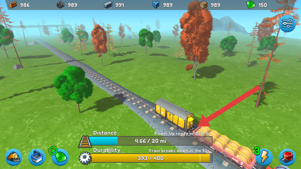 2、優(yōu)先升級(jí)火車的耐久性,提升火車抗損壞能力,延長(zhǎng)運(yùn)行時(shí)間;也可根據(jù)需求,升級(jí)速度或貨物運(yùn)輸量,優(yōu)化運(yùn)輸?shù)男省?