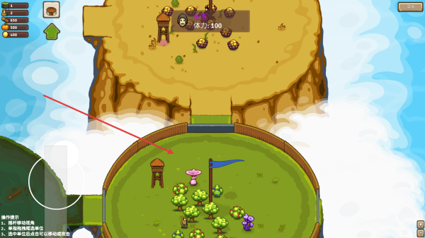 4、通過(guò)左下角虛擬搖桿移動(dòng)角色,探索地圖,收集資源,留意屏幕上方體力等信息,逐步建立和發(fā)展自己的勢(shì)力。