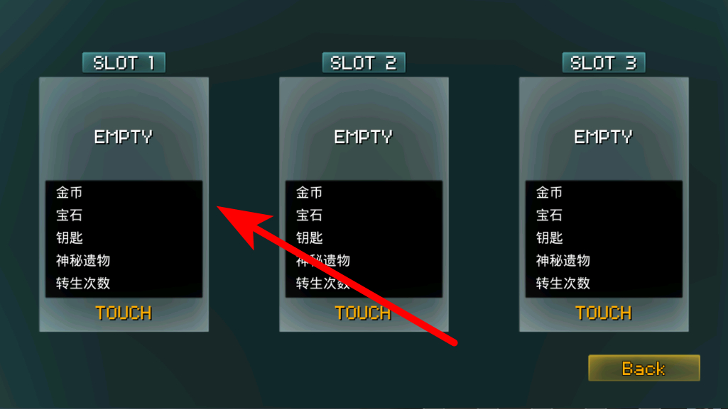 1、進(jìn)入游戲,首先看到存檔選擇界面,有多個存檔槽可供選擇,選擇其中一個存檔槽,為后續(xù)的冒險戰(zhàn)斗建立檔案,開啟游戲進(jìn)程。