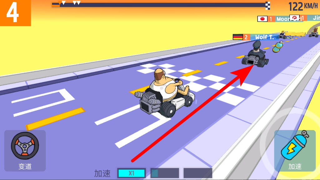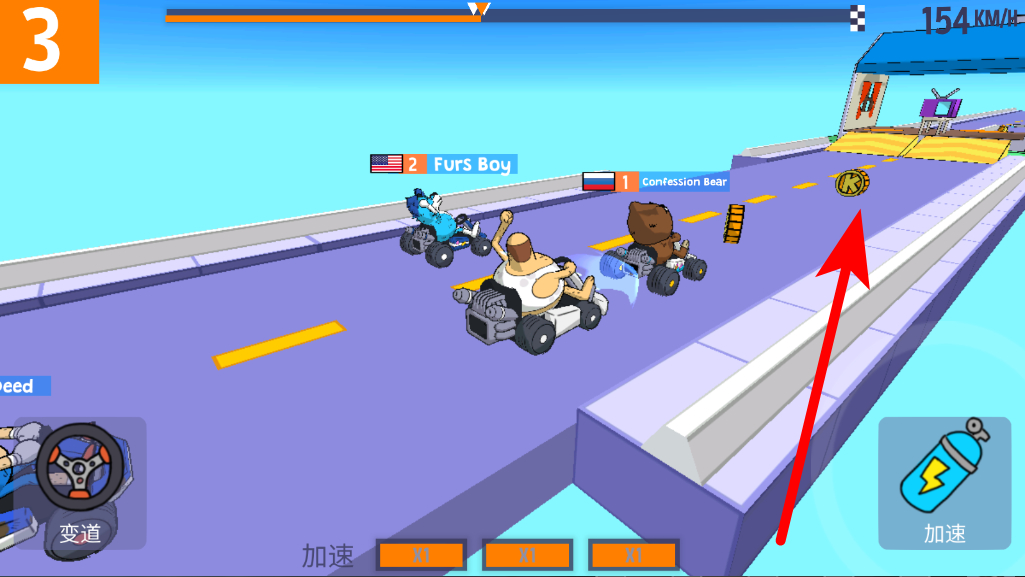 1、在競速過程中,密切關(guān)注前方對手的位置,利用加速功能或靈活變道,努力追趕領(lǐng)先的對手,縮小與他們的距離,為超越對手創(chuàng)造機會。