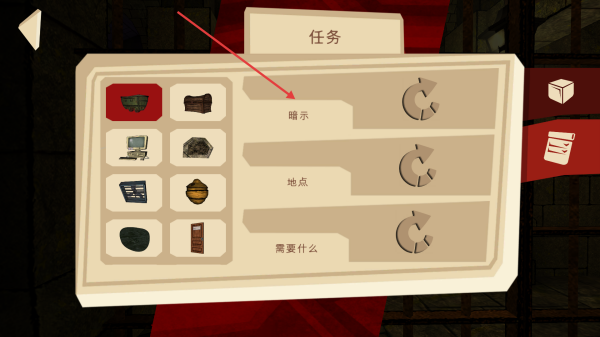 3、遇到任務(wù)時(shí),打開(kāi)任務(wù)界面,點(diǎn)擊暗示查看任務(wù)提示,幫助自己推進(jìn)游戲流程。