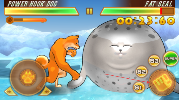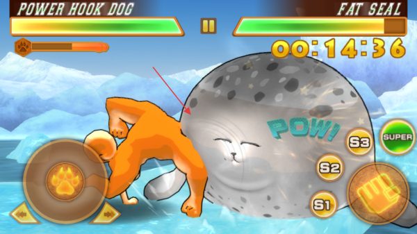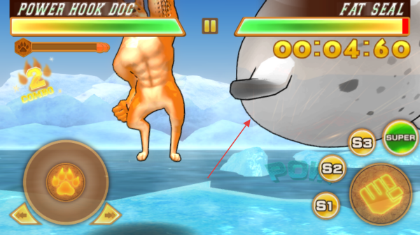 1、面對FAT SEAL時(shí)開場通過左側(cè)搖桿操控POWER HOOK DOG走位找合適攻擊時(shí)機(jī)注意上方時(shí)間計(jì)時(shí)。
