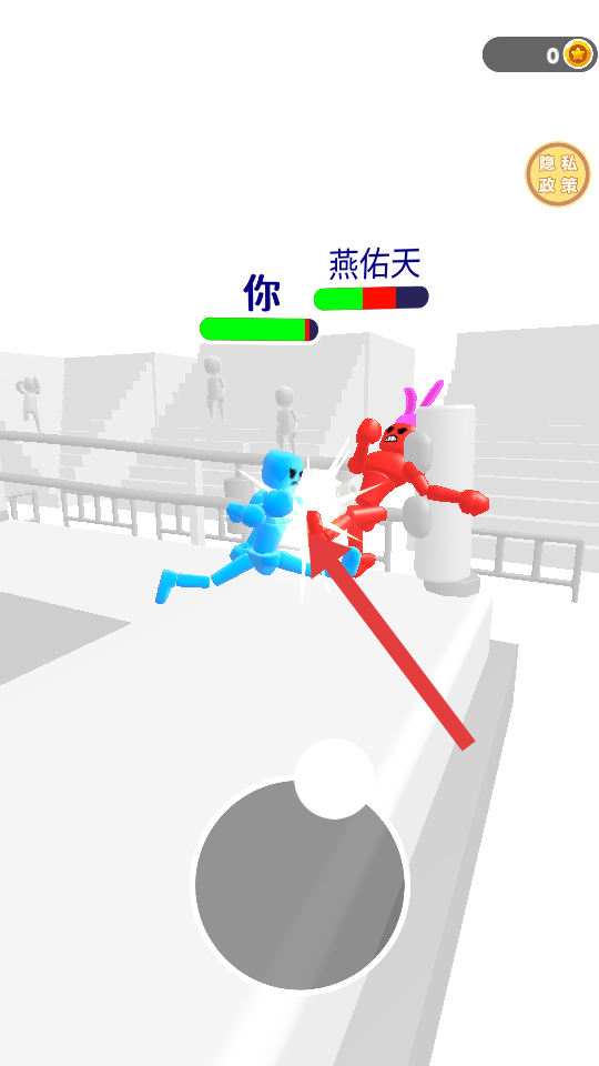 2、對(duì)戰(zhàn)時(shí)重點(diǎn)關(guān)注屏幕上方的生命值條,當(dāng)自身血量低于三分之一時(shí),減少主動(dòng)進(jìn)攻頻率,通過(guò)左右橫移躲避對(duì)手攻擊。