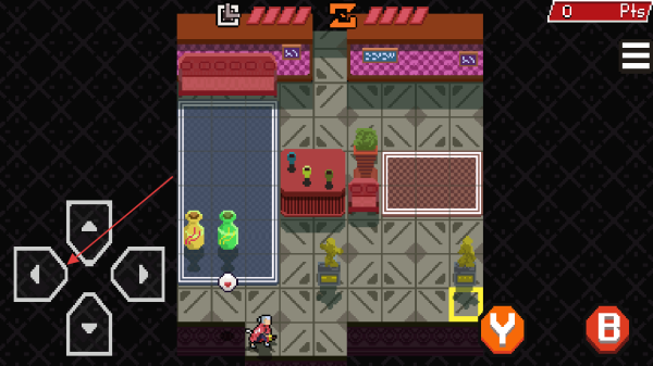 1、進入游戲通過屏幕左側方向鍵操控角色移動在室內(nèi)場景中探索。