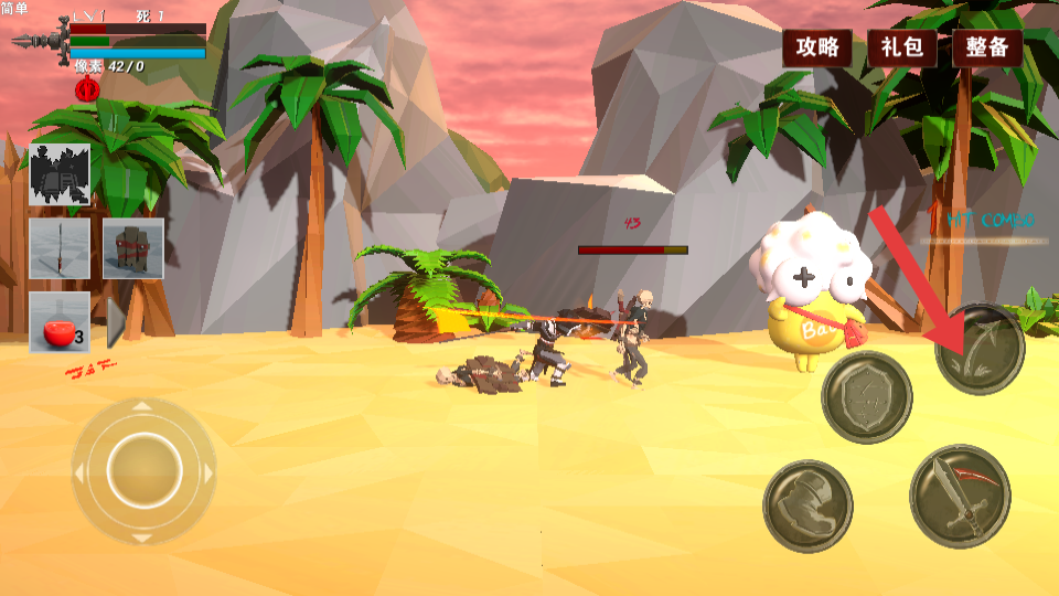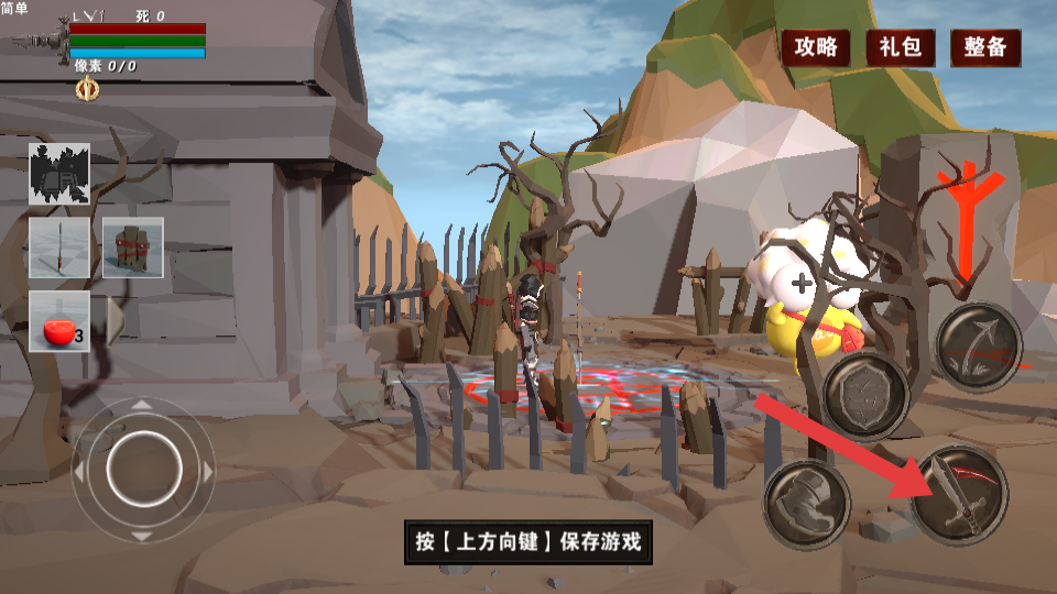 1、先通過方向鍵控制角色移動,搭配攻擊按鍵練習(xí)基礎(chǔ)戰(zhàn)斗操作,初期面對敵人時,優(yōu)先單次攻擊后快速后撤。