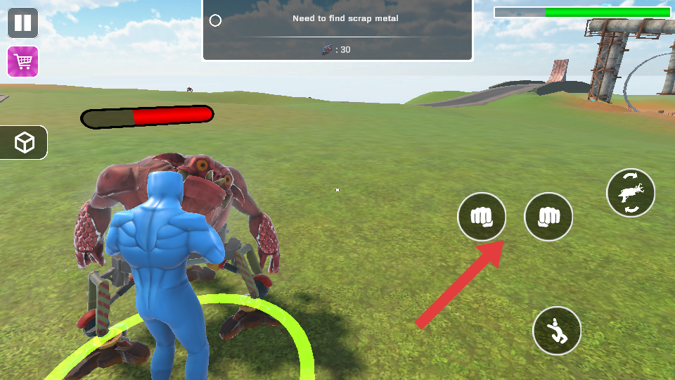 3、遭遇螃蟹狀等怪物時,利用右側(cè)拳頭攻擊按鍵進行戰(zhàn)斗。戰(zhàn)斗中注意怪物攻擊節(jié)奏,在其攻擊間隙快速點擊攻擊鍵來輸出。