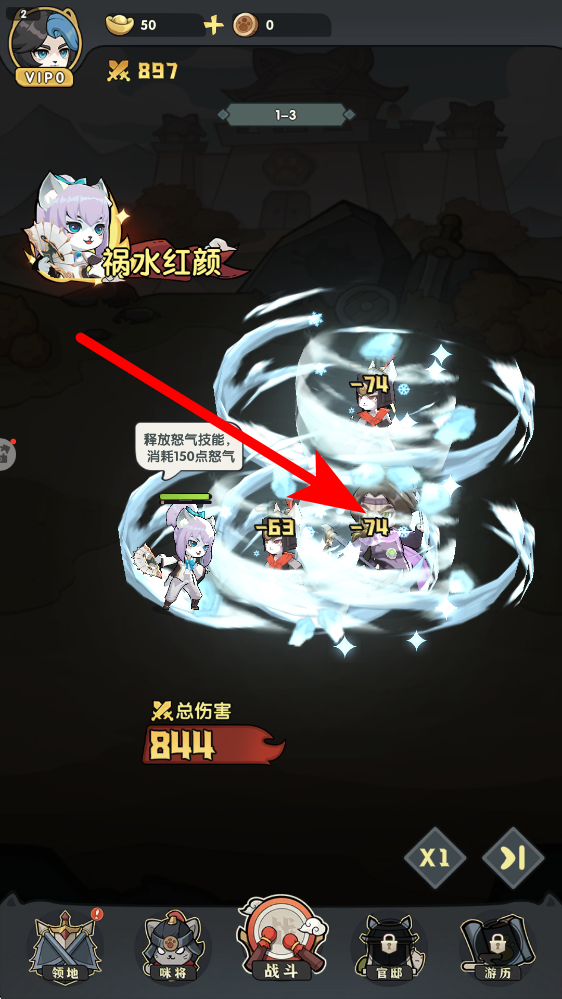 3、接著發(fā)起攻擊,在戰(zhàn)斗過(guò)程中,操控角色釋放技能等進(jìn)行攻擊,像釋放怒氣技能,消耗怒氣值對(duì)敵人造成傷害,擊潰敵方陣容。