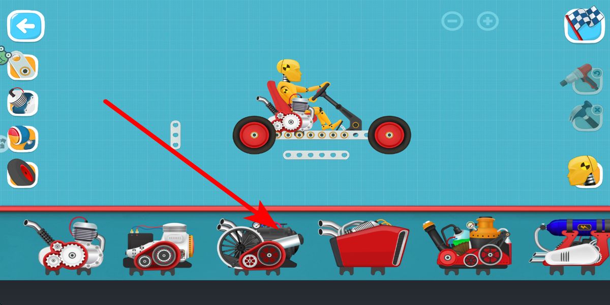 3、接著裝發(fā)動(dòng)機(jī),在發(fā)動(dòng)機(jī)選擇區(qū)域,挑選合適的發(fā)動(dòng)機(jī),將其安裝到車輛上,發(fā)動(dòng)機(jī)為車輛提供動(dòng)力,是車輛運(yùn)行的核心部件。