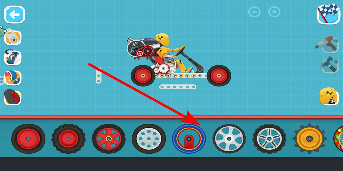 4、最后裝輪胎,在輪胎選擇區(qū)域,選擇合適的輪胎,安裝到車輛的車輪位置,輪胎保障車輛的行駛,完成輪胎安裝后,車輛組裝更趨完善。