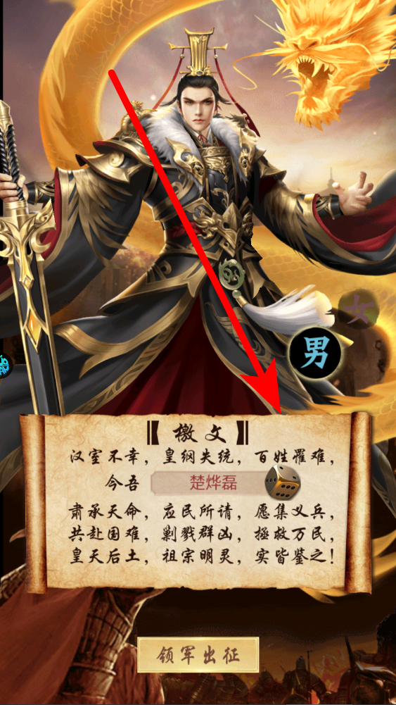1、在初始界面,可選擇不同性別來創(chuàng)建角色,確定角色性別后,還能看到相關檄文,了解背景設定,為后續(xù)的三國征程做好準備。