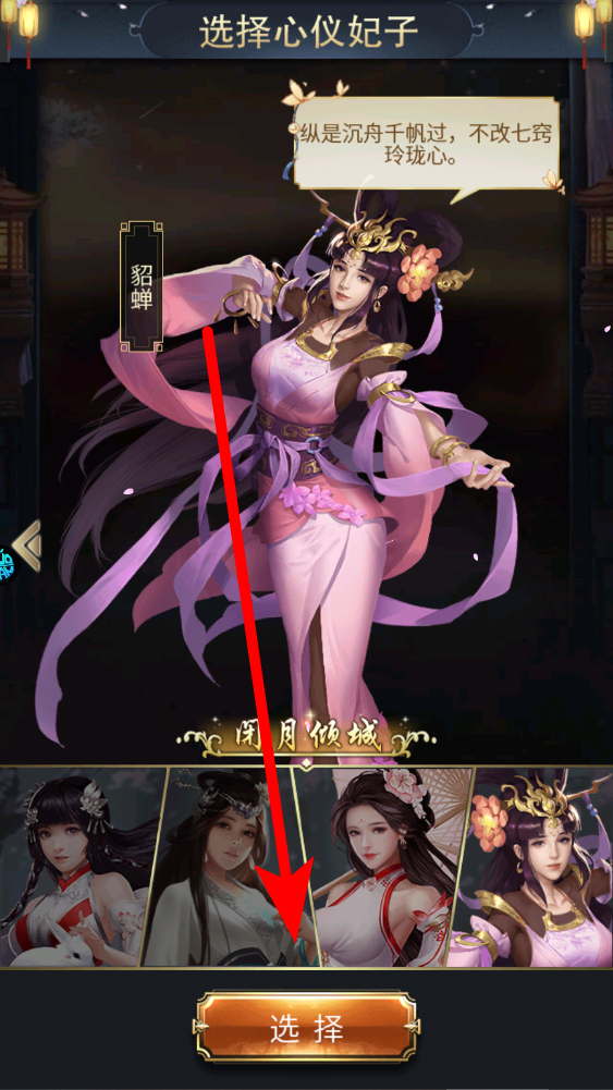 2、進入妃子選擇界面后,有多位風格各異的妃子可供挑選,不同妃子有著獨特的形象與話語,選擇心儀的妃子,能開啟與妃子相關的養(yǎng)成。