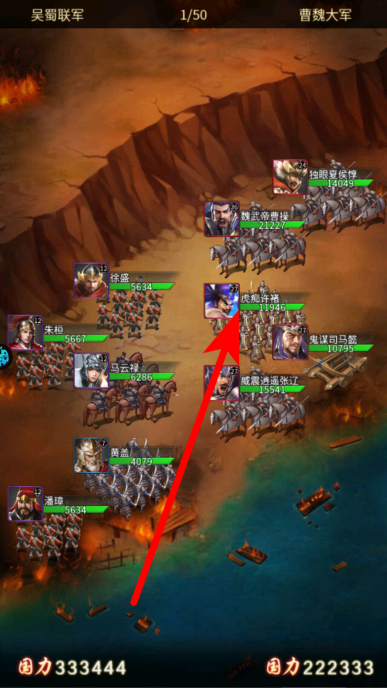 4、最后出征戰(zhàn)斗,可看到不同陣營的軍隊對陣,根據雙方國力與武將配置等情況,指揮軍隊進行戰(zhàn)斗,在征戰(zhàn)中體驗三國戰(zhàn)場的激烈與策略性。