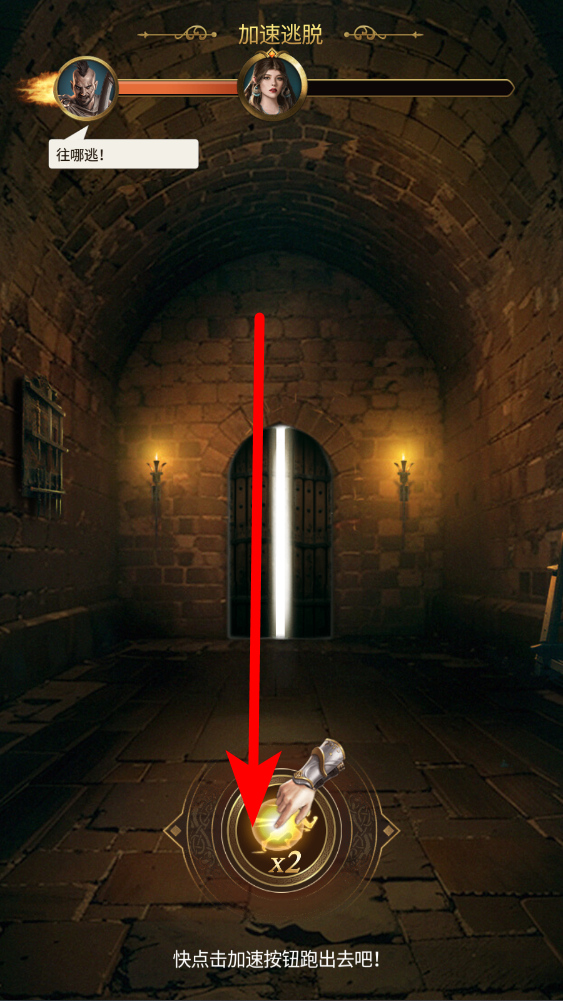 1、在主線劇情地牢的場(chǎng)景中,會(huì)有追擊提示,此時(shí)需點(diǎn)擊加速按鈕,借助加速效果盡快逃離當(dāng)前區(qū)域,為后續(xù)的冒險(xiǎn)爭(zhēng)取機(jī)會(huì),開(kāi)啟體驗(yàn)的第一步。