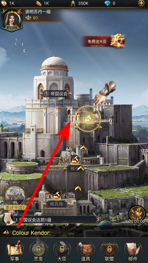 4、城堡等場(chǎng)景里,可對(duì)不同的建筑,如鑄幣廠等進(jìn)行操作,通過(guò)點(diǎn)擊相關(guān)建筑,進(jìn)行建設(shè)或升級(jí),提升建筑的功能,助力帝國(guó)的發(fā)展與壯大。
