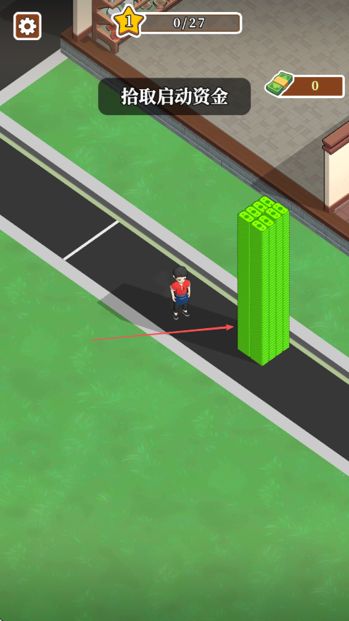 1、進(jìn)入游戲,操控角色走向綠色的啟動(dòng)資金處,點(diǎn)擊拾取啟動(dòng)資金。