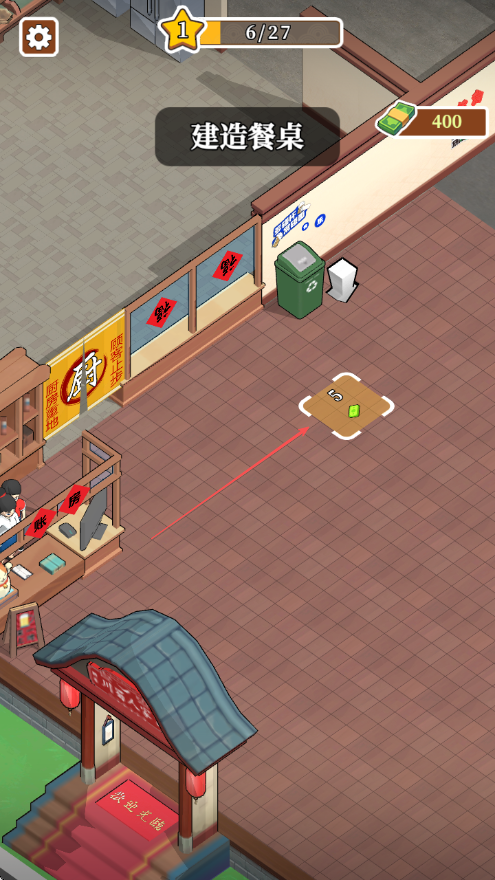 2、使用資金,在指定區(qū)域點(diǎn)擊建造店面,開(kāi)啟餐廳建設(shè)第一步。