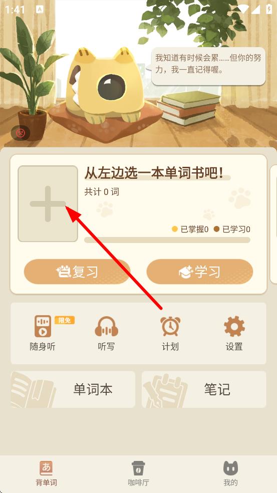 1、點擊添加單詞書的+按鈕,進入全部單詞書頁面。