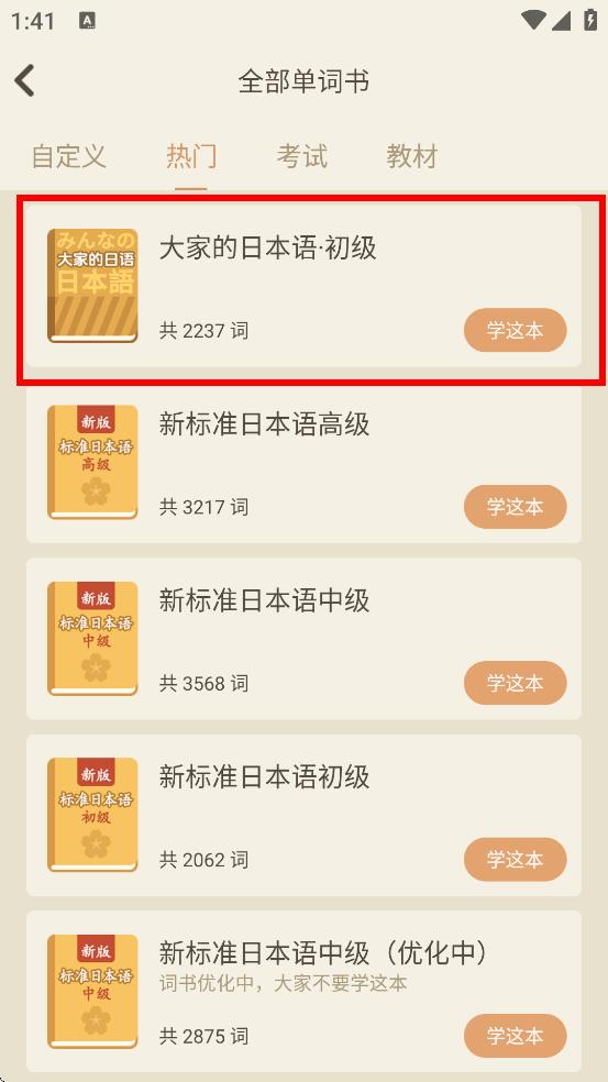 3、在分類下,選擇要學習的單詞書,如大家的日本語初級。