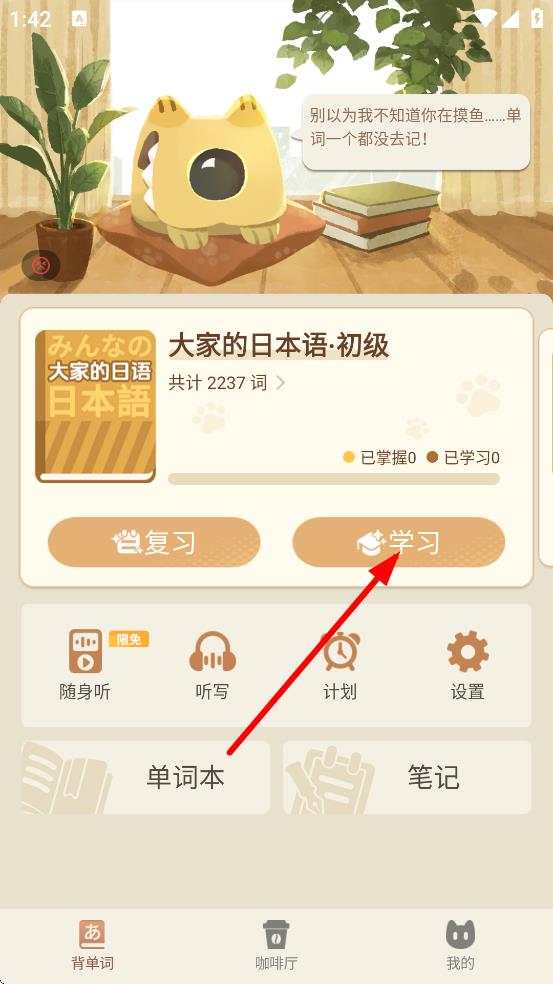 4、選好單詞書后,回到主界面點擊學習,開始學習該單詞書的單詞。