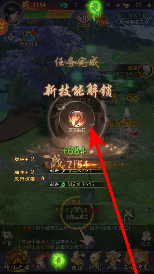 3、接著解鎖技能,完成相關任務或達到一定條件后,會解鎖新技能,像穿云裂石等,這些新技能能豐富戰(zhàn)斗手段,提升角色戰(zhàn)力。