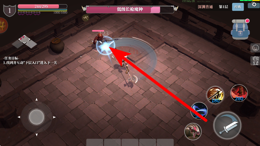 4、可以與任務(wù)的怪物戰(zhàn)斗,在場景中遇到如低級的長槍魔神等怪物時,可使用技能與怪物戰(zhàn)斗,擊敗怪物推進(jìn)冒險進(jìn)程。