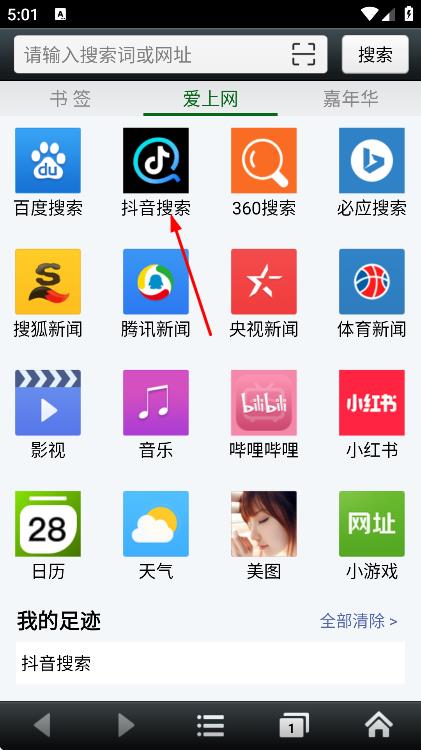 1、在首頁,點擊抖音搜索,進入抖音搜索頁面。