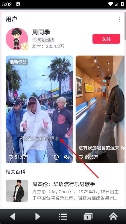 3、在搜索結(jié)果中,點擊相關(guān)視頻,進入視頻播放頁面。