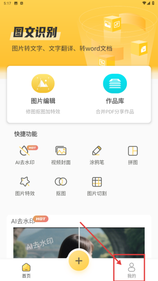 1、打開(kāi)圖文識(shí)別應(yīng)用,點(diǎn)擊底部我的選項(xiàng),進(jìn)入個(gè)人中心頁(yè)面。