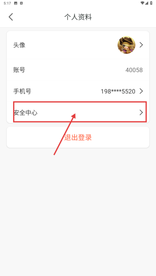 3、在個(gè)人資料頁(yè),點(diǎn)擊安全中心選項(xiàng),進(jìn)入安全設(shè)置界面。