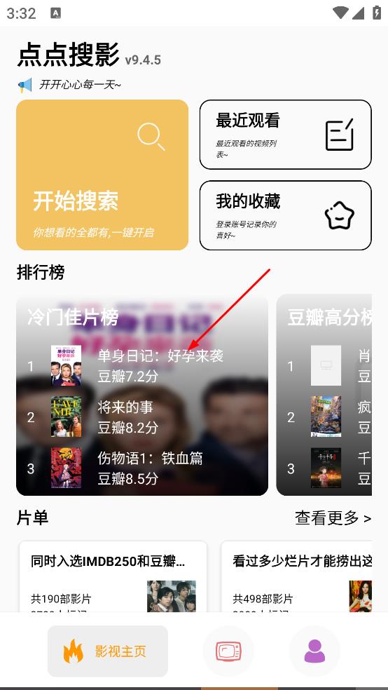 1、在首頁(yè),點(diǎn)擊排行榜中的影片,進(jìn)入影片榜單頁(yè)面。